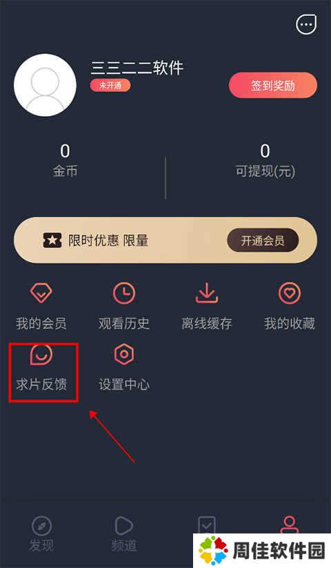 5、如果没有搜索到自己想看的,也不用着急,可以点击“我的”-“求片反馈”进行留言即可。
