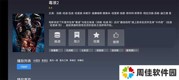3、进入到毒液2页面中能看到有很多资源目录都可以使用的,大家在点击播放的时候肯定会弹出需要赞助才能观看,千万不要慌,推出赞助界面,从新换个资源栏。