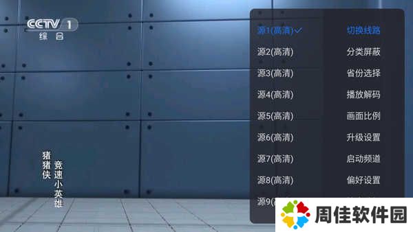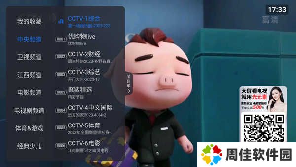 1、打开云海电视纯净版app,点击左侧屏幕,用户可以选择要观看的电视频道;