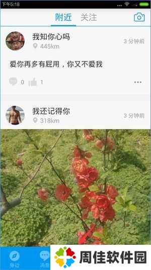 4、进入动态页面,即可查看附近朋友和你关注的朋友最新的动态。