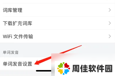 2、进入到设置界面,点击其中的“单词发音设置”选项。