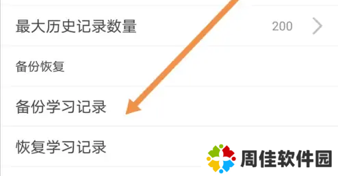 然后在个人选项列表中选择倒数第2项备份学习记录