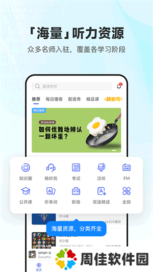 兴趣学习:有声读物、名人演讲、公开课、少儿英语、影视英语等丰富资源。