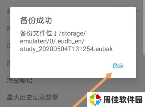 然后会出现一个提示,表示备份成功,并显示出了备份文件的位置,点击右下角的确定即可
