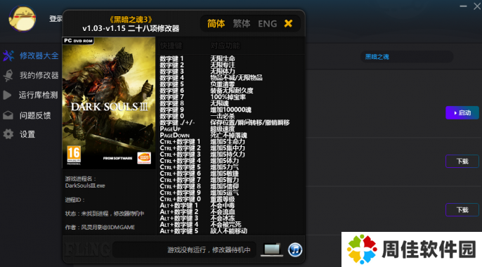 安装完成后,打开风灵月影修改器,可以看到其主界面。该界面中提供了许多游戏的选择,用户可以在其中找到自己想要修改的游戏并进入相应的修改画面。