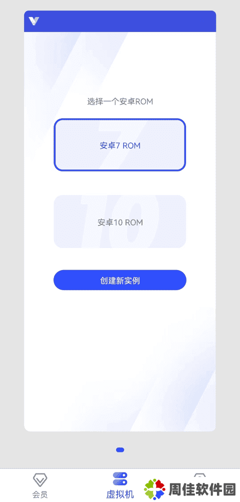首次使用这款光速虚拟机 APP,先要创建实例,也就是创建虚拟机,有安卓 7 和安卓 10 两个版本可供选择,创建实例个数不受限制。