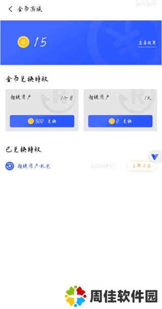 2、打开金币兑换特权,里边有超级用户一个月零金币兑换,点击零金币兑换。