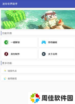 1、玩家们想要使用迷你世界助手的话,那就应该先点击进入迷你世界助手主页,选择其中的“一键解锁”功能,从而解锁游戏里的装扮;