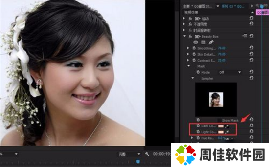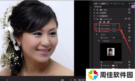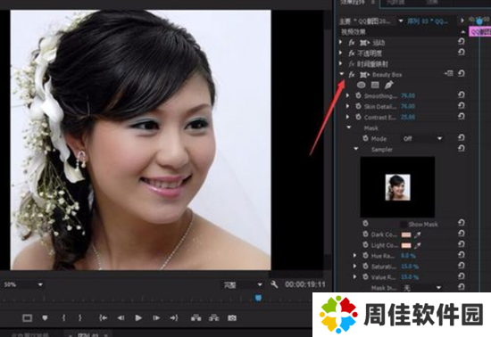 3、打开特效面版 ,找到Beauty Box 插件,把它放入素材的控制面版。可以看到只要把它放进去就可以看到以经有光滑的效果了。