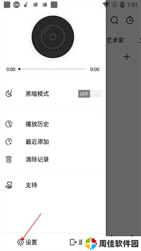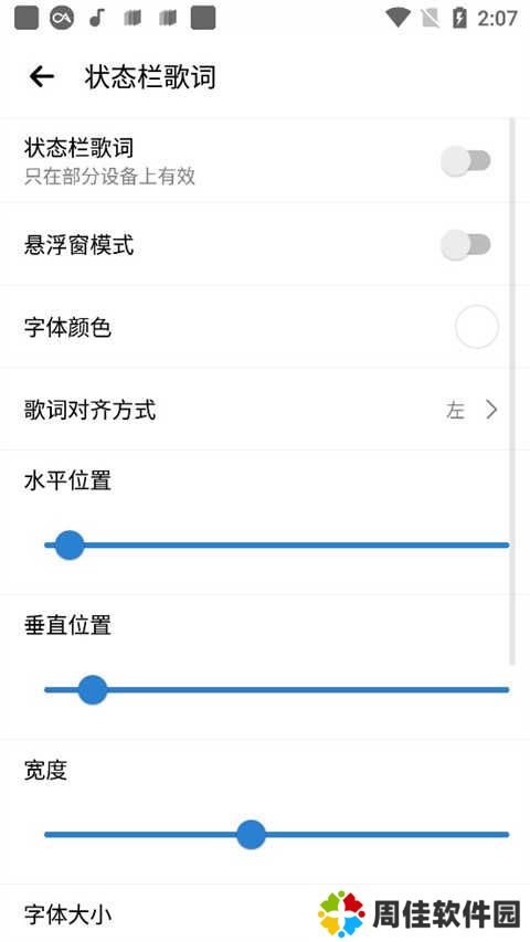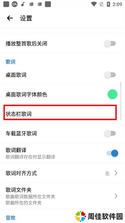 1.先进入rplayer音乐播放器最新版的设置当中,往下滑动找到状态栏歌词;