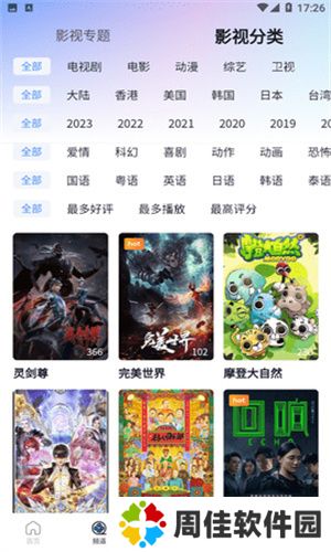 2、影视分类明细,根据影片评分、上映时间、热度筛选,还有大量的影视专题推荐。