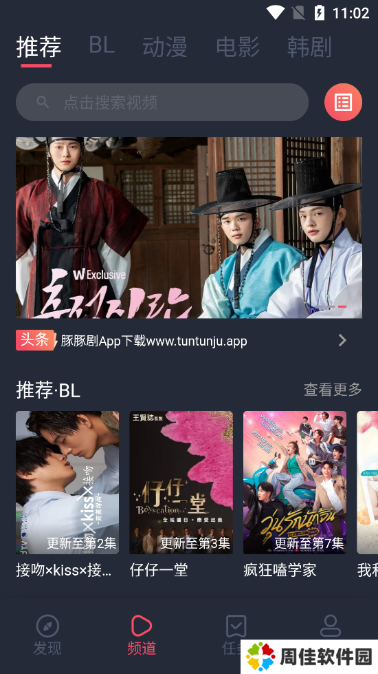 1、打开豚豚剧app,点击“频道”选项,选择自己喜欢的电视剧、电影等。