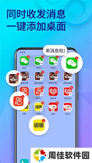 微信双开分身app功能完善,广受分身大师用户好评,消息首发及时,是您工作生活、市场推广、薅羊毛党分身双开助手,多开分身无压力,分身版免费安全不封号,支持91视频、Pi、Vtoken、滴滴出行、拼多多分身。