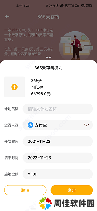 1、存钱模式:根据存钱需求自由选择存钱模式,自动生成每天要存入的金额