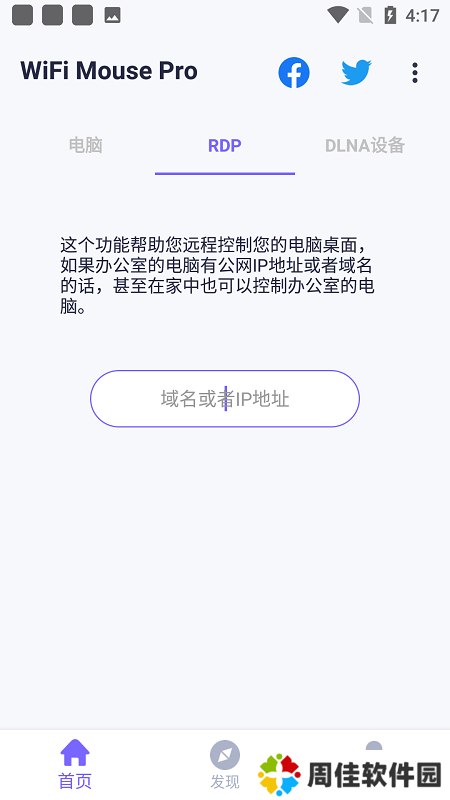 1、使用WiFi Mouse连接电脑后,点击RDP图标连接电脑远程桌面。