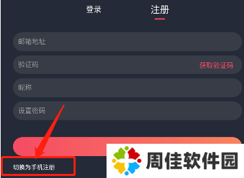 2、点击【注册】可以使用手机号或者是邮箱注册,建议大家使用手机号,想要使用邮箱可以点击左下角的【切换为邮箱注册】;