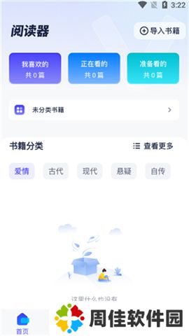 2、在首页这里我们可以看到非常丰富的小说资源种类,如果想要导入本地书籍资源,我们需要点击右上角的“导入书籍”按钮。