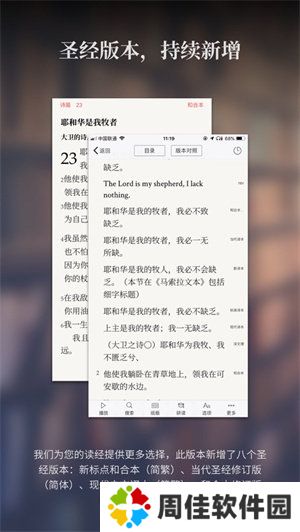 3、版本更加丰富:我们为您的读经提供更多选择,此版本新增了九个版本即新标点和合本(繁简)、现代中文译本(繁简)、和合本修订