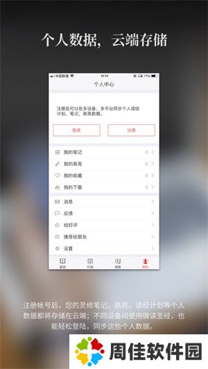 5、个人数据云端储存:只需注册帐号,您的灵修笔记,高亮,读经计划等都将存储在云端,不同设备间使用微读,也能轻松登陆,同步所