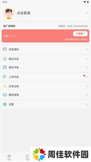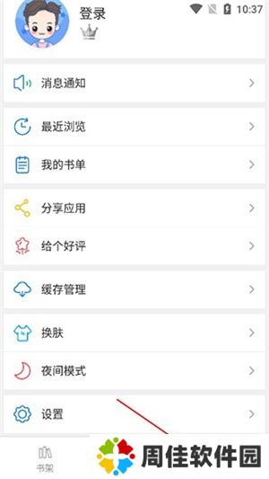 2、在该页面中,可以看到浏览记录和下载的小说,点击设置。