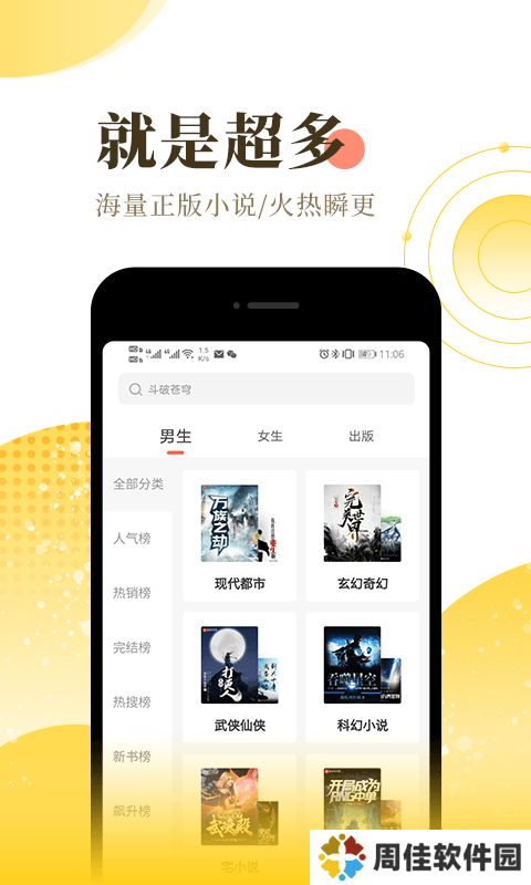 2、可随意阅读的正版好书超过10万本,包括武侠神仙、都市言情、奇幻、军史、游戏竞技、青春校园、科幻悬疑、扫网、网络小说正版阅读等;