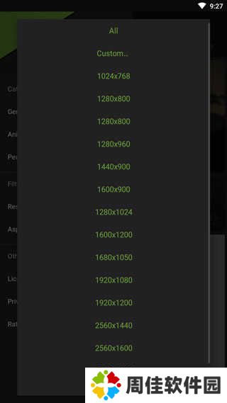 2、点击软件左上角“三”图标,找到resolution,选择壁纸的分辨率;