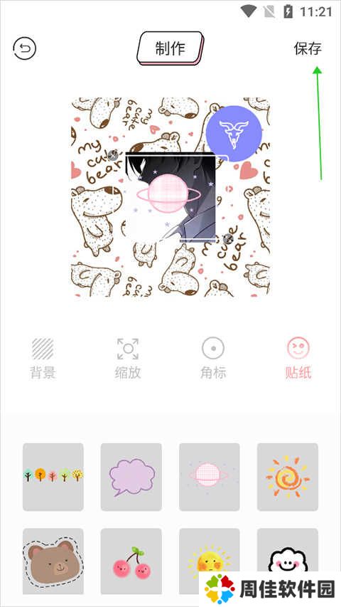 6、想要贴纸的可以选择贴纸,全部好了后,点击右上角的保存,即可将编辑好的头像保存在手机中