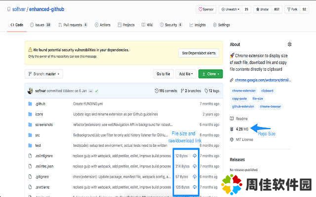 *从v3.0.0开始,此扩展需要webRequest权限,以便它可以正确处理GitHub网站的SPA行为。