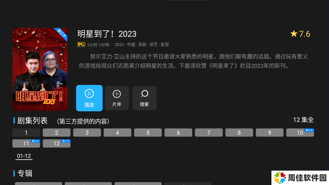 3、这边我们就以明星到了!2023为例子,即可看见相应的影视介绍以及剧集;