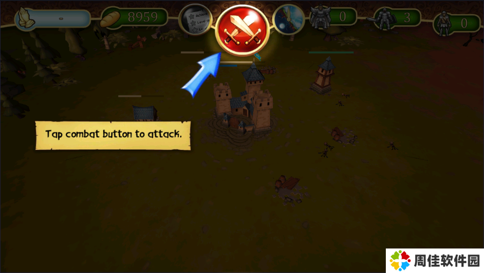 1、在进入游戏后,将会出现非常贴心的游戏提示,玩家可以去发起攻击,在夜晚召回士兵进行防守;