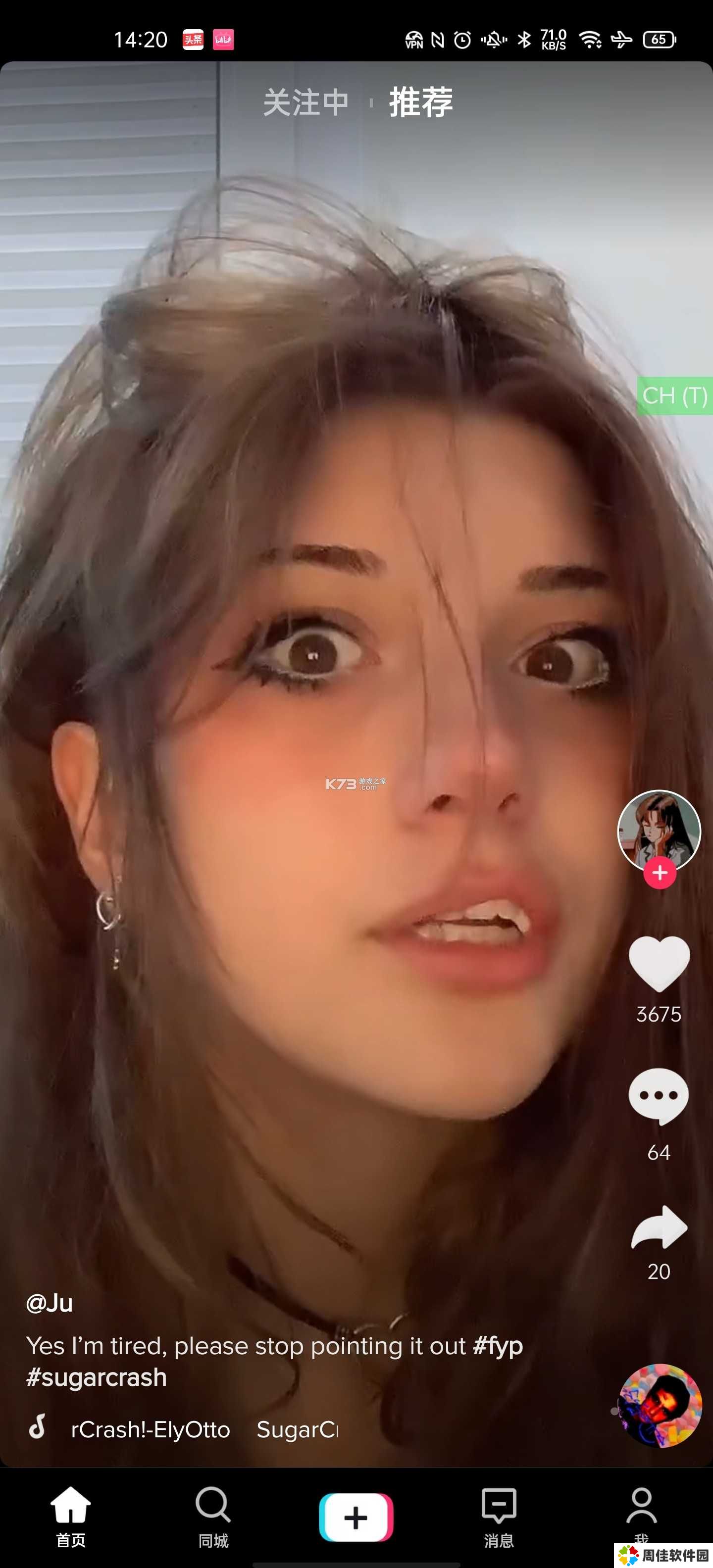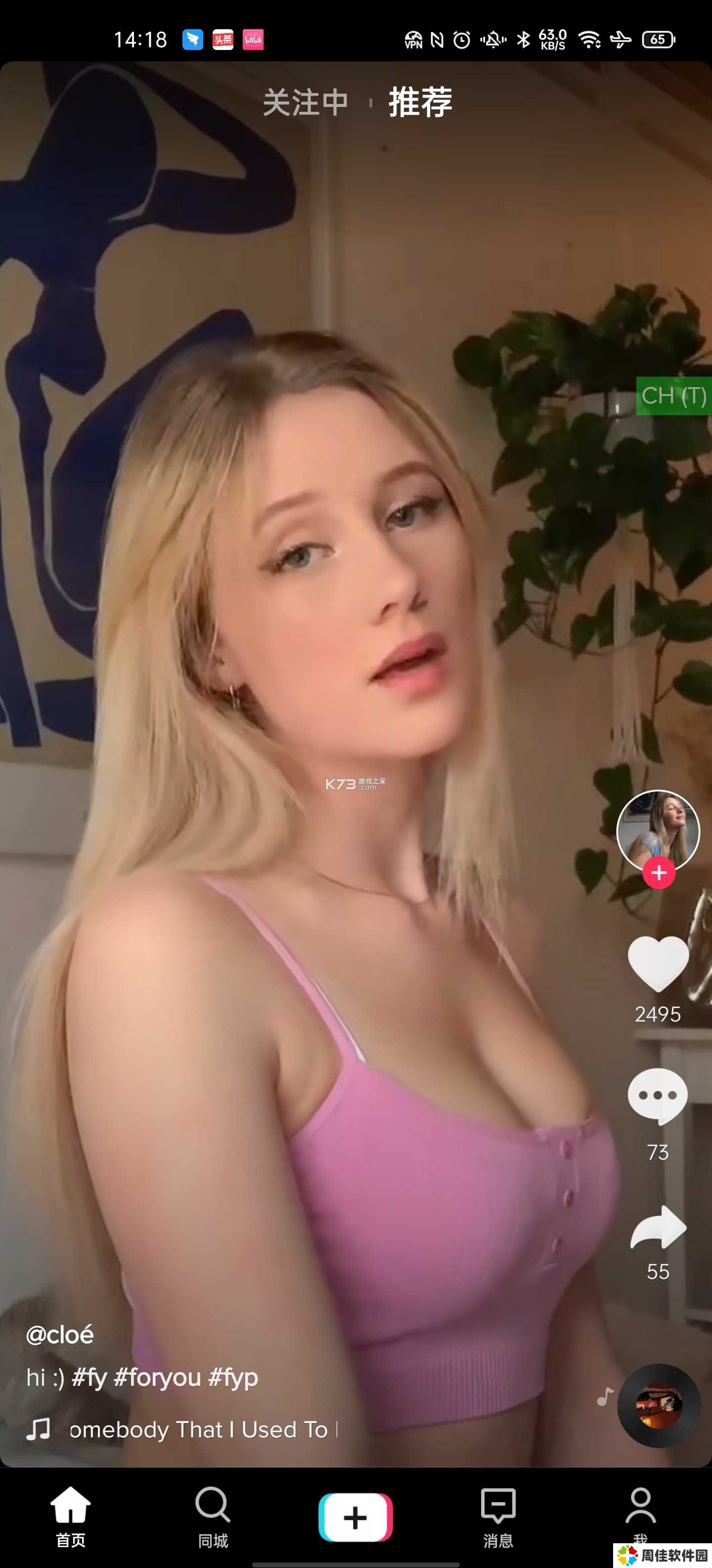 由于TikTok服务器在境外,故需自备梯子,否则打开很慢会一直加载中