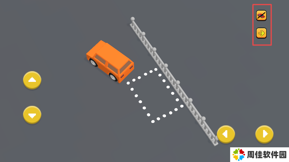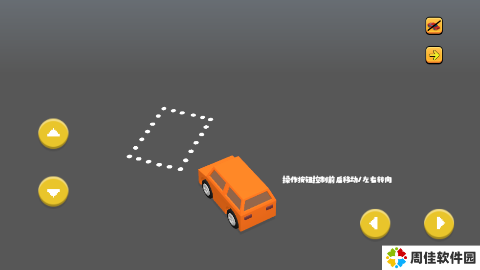 倒车模拟器内容:1、打开游戏,可以看到画面左右各有两个按键,左边是控制汽车前进后退的,右边控制汽车左右转向;