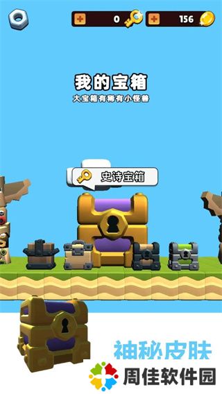 【获得资源】有很多宝箱可以打开。玩家可以从宝箱中获得大量的游戏资源,收集神秘的怪物皮肤。