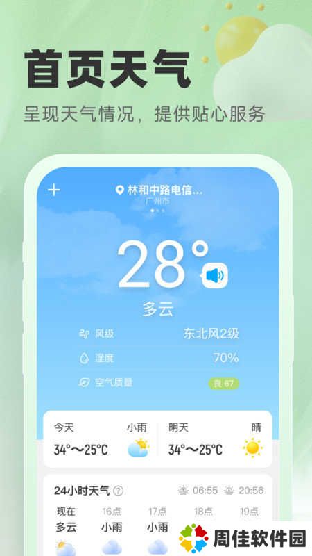 2、小时预报:用户可查看每小时的天气状态,使他们能够及时了解晴雨天气变化,指导出行和活动。