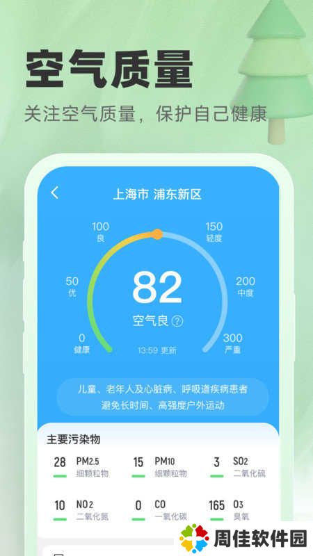 1、提供空气质量指数(AQI)的信息,帮助用户了解空气污染状况;