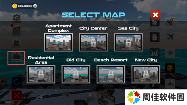 3、在将破坏进度顺利的达到百分百之后就可以解锁下一个城市场景继续去进行游戏。