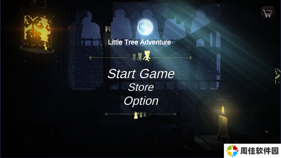 1、打开游戏后,玩家可以看到主界面,第一个是开始游戏,第二个是商店,第三个是关于设置;
