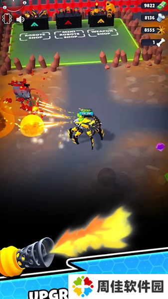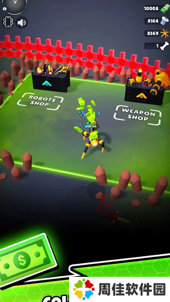 【收集资源】玩家需要收集金币和宝石来购买新武器并升级机器人以增加自己的战斗力消灭老鼠。
