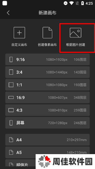2、新建画布可自定义画布和创建像素画布,还可根据图片创建画布:导入需要临摹的图画,即可自动适配相同像素的画布;