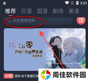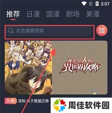 1、先在软件搜索框处输入动漫名称点击搜索查找。