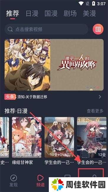 直接在软件中查看动漫频道,查找想看的翻找想看的动漫。