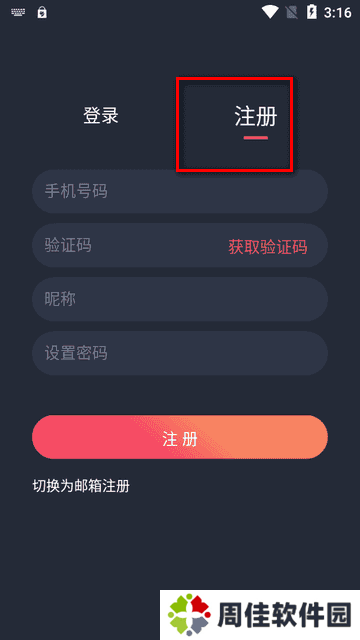 2、用户下载安装之后首先点击进入到软件的主界面中点击进行注册登录。