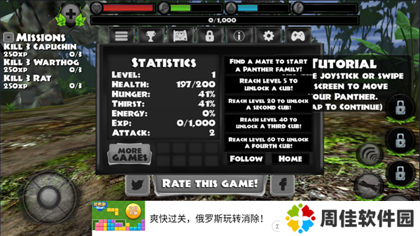 终极黑豹模拟器内容:1、在打开游戏后玩家将会看到这个画面,上方是关于豹子的各种属性,需要注意保持生存