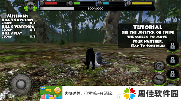 【观察猎物】以黑豹的视角体验独特的视觉体验,利用其强大的利爪在森林中捕猎猎物,观察每只动物的一举一动。
