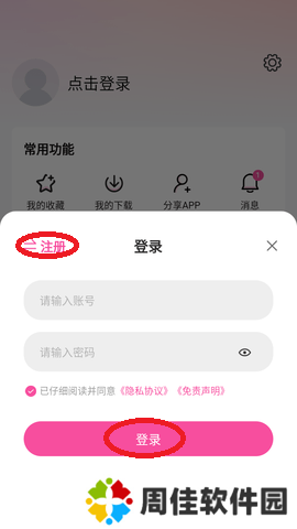1、在本页面点击下载该软件,进入APP,点击“我的”,再点击上方登录按钮;