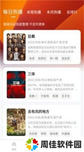 2、该应用针对不同用户需求设置了多个分类选项,包括热播排行榜、最新上线内容。