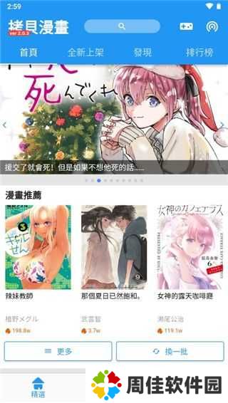 1、首页推荐,超多热门漫画强势登录,每部漫画下还有热度值,点击率超高。2、全新上架,最新最热的漫画全网同步更新,在这里不会有漫荒的烦恼。