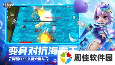 1、新boss:对局期间,海霸王会从海底现身,释放各类威胁十足的技能——水炮、海啸、大漩涡...