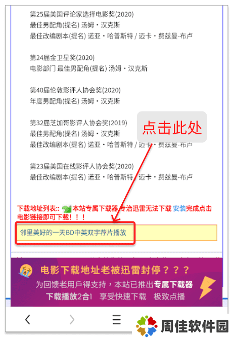 2、使用手机浏览器,在支持荐片播放器的网站,到您想看的影片下载页面,点击"荐片播放"的影片链接