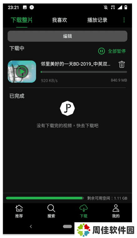 4、若没有要马上观看,播放器也已同时自动将此电影加入到「下载」清单中,您可以随时观看此影片